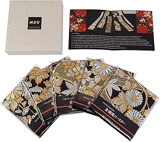 プレゼントに最適 そのまま渡せる箱入 包装済み 金襴織 和風 着物コースター5枚セット (金華)