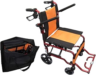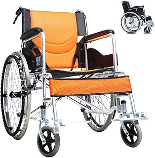 Round World 車椅子 軽量 折り畳み式 自走用 車いす 介助ブレーキ付き ノーパンクタイヤ コンパクト 軽い車椅子 折りたたみ 車イス 安い車椅子 お年寄り ORANGE