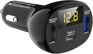 aceyoon カーチャージャー 3ポート Quick Charge 3.0 28W 合計5.4A 急速充電 シガーソケット 電圧計 12V/24V対応 車載充電器 USB Type C カーチャージャー 2USB+タイプcポート 電圧測定 LED表示 iPad/i-Phone/Android/IQOS など対応