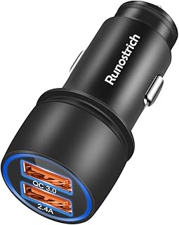 【Quick Charge3.0】車載充電器 急速充電 Runostrich 超小型 アルミ合金製 スマホ充電器 USB カーチャージャー 2ポート 充電 車用 Switch/3DS、iPhone8/XR/XS/XS Max、iPad/Galaxy、Xperia、その他Android各機種/IOS対応 (黒)