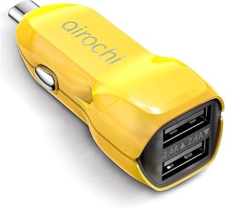 USB カーチャージャー 2ポート airochi 4.8A 急速充電 シガーソケット 車載充電器 付き ショート防止 高温耐性 超コンパクト 斬新なデザイン 対応iPhone iPad Sony Xperia Samsung Galaxy ASUS ZenFone(黄色い)