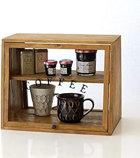 シェルフ 収納 フラップ扉 両面 ガラス 木製 キッチン スパイスラック ウッドシェルフ 整理 棚 2段 シンプル かわいい ナチュラル ウッド両面ラック [cle8414]