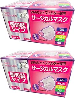 個包装 小さめサイズ サージカルマスク 50枚×2セット 99%カット 5mm幅広ソフト平ゴム ノーズワイヤー付 使い捨てマスク【カケンテストセンター実証済】【SGS認証】