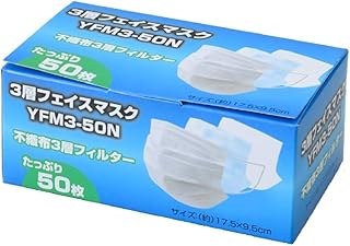 山善 マスク プリーツマスク オメガプリーツ 3層構造 使い捨て 不織布マスク BFE/PFE/VFE 99% ホワイト 白 50枚入り 箱 大容量 YFM3-50N