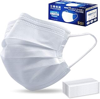 マスク 使い捨てマスク 51枚入り 不織布 通気性 3層構造 プリーツマスク 飛沫・花粉カット 風邪予防 PM2.5対応 ふつうサイズ 男女兼用 箱付き