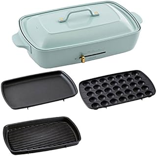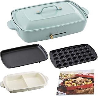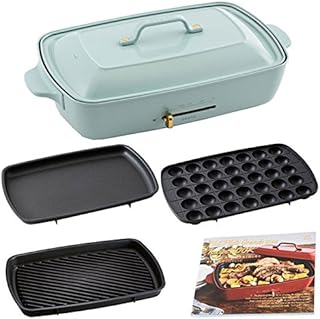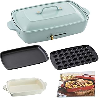 BRUNO ブルーノ ホットプレート グランデ サイズ 本体 プレート3種 (たこ焼き 平面 グリル) レシピブック 付き ブルーグレー Blue Gray おしゃれ かわいい ふた付き 温度調節 洗いやすい 4人 5人用 大きいサイズ 多人数 BOE026-BGY 1700406