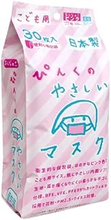【ビホウマスク 安心の日本製 使い捨て不織布マスク 耳が痛くならない平ゴム・肌にやさしい内面ソフト生地仕様 小学生用】こども用ぴんくのやさしいマスク(個包装) 30枚入