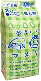 【ビホウマスク 安心の日本製 使い捨て不織布マスク 耳が痛くならない柔らかな平ゴム・肌にやさしい内面ソフト生地仕様 小学生用】こども用まっ白なやさしいマスク(個包装) 30枚入