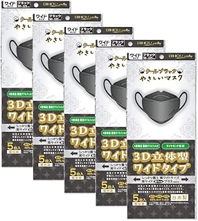 【ビホウマスク 安心の日本製 4層構造 国産高機能フィルタをダブル使用! 口元に3D空間を作り呼吸がしやすく肌との摩擦を防ぐ最新立体型マスク 頬まで覆うワイドサイズで身体の大きな方にもおすすめ! 顔がキリっと見えるブラックタイプ】3D立体型 クールブラックやさしいマスク ワイドサイズ 5枚入 5袋セット