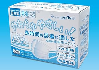 【ビホウマスク 安心の日本製 使い捨て不織布マスク 耳が痛くならないふわふわ太耳ゴム・肌にやさしい内面ふわふわ生地・息通りさわやか無臭生地仕様】やわらか・やさしい! 業務用2層マスク ホワイト 100枚入