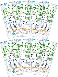 10袋セット【ビホウマスク 安心の日本製 使い捨て不織布マスク しっかり覆う特大サイズ 耳が痛くならない平ゴム・肌にやさしい内面ソフト生地仕様 軽い着け心地 花粉・ウイルス・飛沫防止】スーパー横ワイドまっ白なやさしいマスク(個包装)7枚入